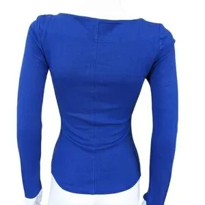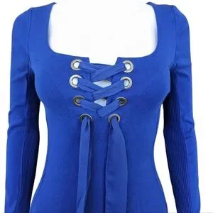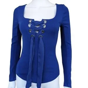 Free People Looking Back Blue Cobalt Long Sleeve Lace-Up Top