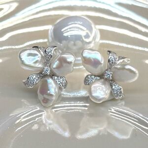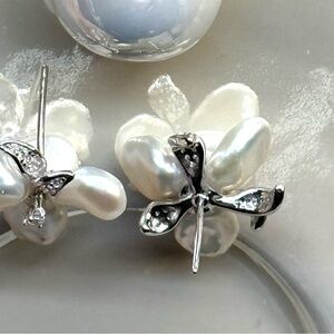 GENUINE PREMIUM White Flower Petal/ KESHI Pearl Earrings!