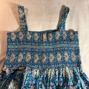 Zara Blue and White Square Neck smock Maxi Sundress Bohemian, Beachy, Coachella