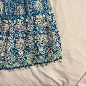 Zara Blue Pink Green Embroidered Broderie Anglaise Pom Pom Maxi Dress M Tiered. Coachella Vives, Beachy Vives, Bohemian Vive