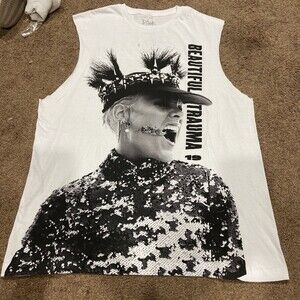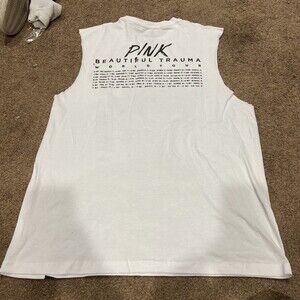 Pink Beautiful Trauma World Tour Womens Tank Top Cut Off Shirt White Size L