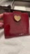 Gucci’s vintage red monogram wallet gold heart-shaped snaps The wallet measures 4 1/2 inches in width and 3.75 inches high.