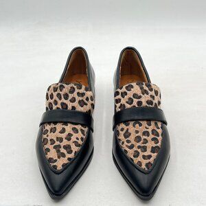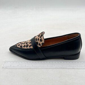 YDN Leopard Black Loafers Comfort Stacked Low Heel Poined Slip On Walking Shoes