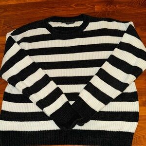 Women Black and White Striped Crewneck Sweater