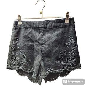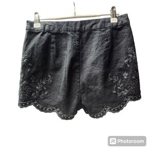 Free People Life’s Too Short Shorts Black Sz. 4 Embroidered Eyelet Scalloped