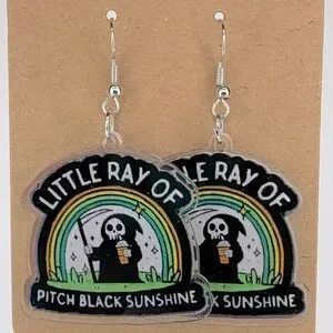 “Little Ray Of Pitch Black Sunshine” Fun 2D Acrylic Dangle Earrings Fashion