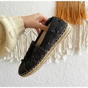 Sam Edelman Espadrille Sequin Detail Black Slip On Flats 8