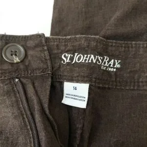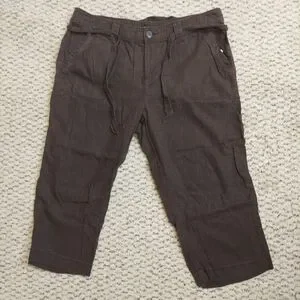 St Johns Bay Capris Linen Blend Capris Womens 14 Brown Drawstring Shorts