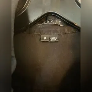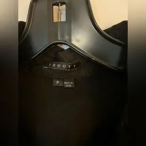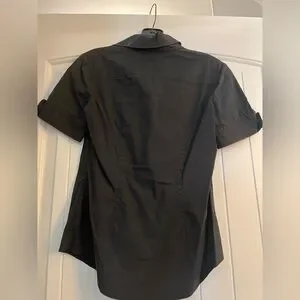 Black short sleeve Theory button down top. Size petite, fits like an XS. Good condition. No flaws.