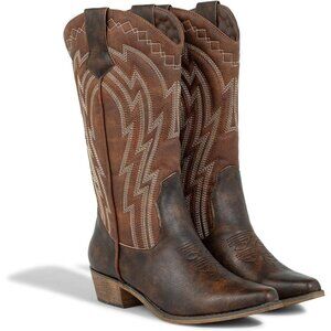 Women's Cowgirl Boots Cowboy Vintage Embroidered Brown Western Boots Snip Toe