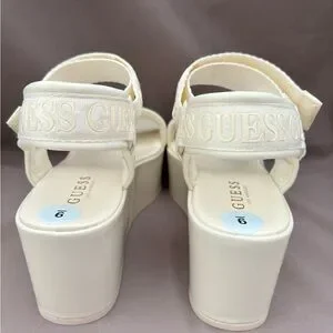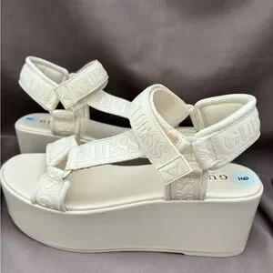 NWOT GUESS PLATFORM OFF WHITE SZ 9 SANDALS CLOTH STRAPS WITH GUESS LOS ANGELES