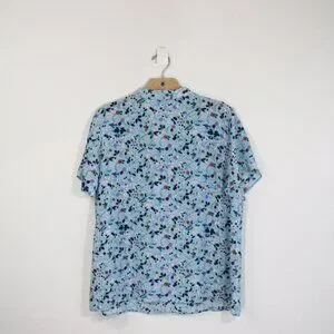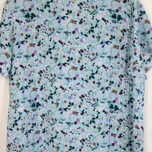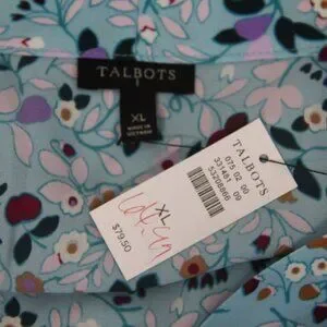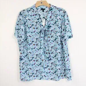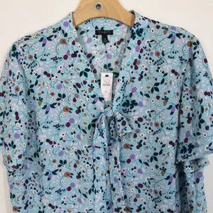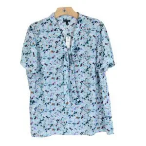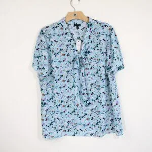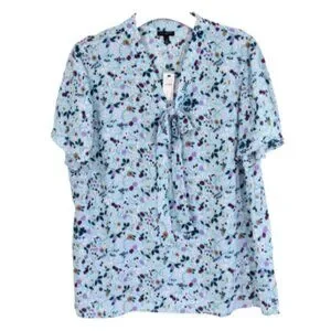 Talbots Floral Top New Women Short Sleeve Blouse V Neck Bow Shirt sz XL