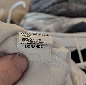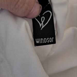 This elegant lace skirt in white is perfect for any occasion. Its intricate design adds a touch of sophistication to your wardrobe. attached underskirt. zip closure in the back. pencil skirt style. right above knee length. size large.