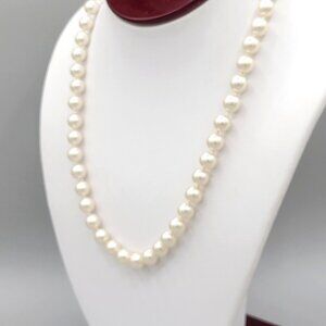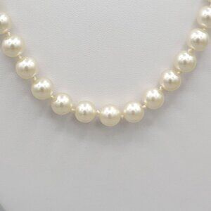 Womens White Imitation Pearl Necklace Fish Hook Closure Princess Length 18 in