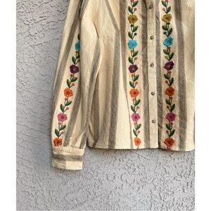 SEZANE Yellow Cream Ecru Striped Multicolor Pink Orange Green Blue Floral Embroidered Button Down Aina Blouse Shirt