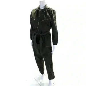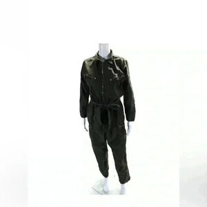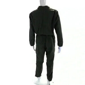 NSF Womens Zippered Elastic Waist Collared Long Sleeved Jumpsuit Green Size M