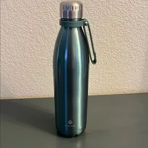 This sleek water bottle is perfect for taking on the go, featuring a durable stainless steel construction and a convenient carabiner for easy carrying. It adds a touch of elegance to your hydration routine.