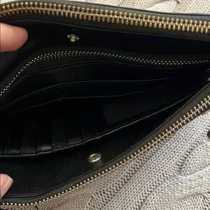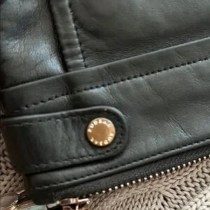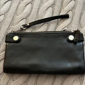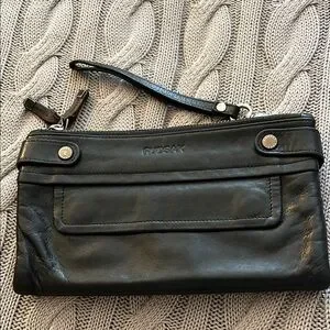 Stylish black leather wristlet by Rudsak. Features a sleek design with a convenient wrist strap.