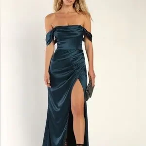 Gorgeous off the shoulder dress with elegant draping. Maxi length. New without tags.