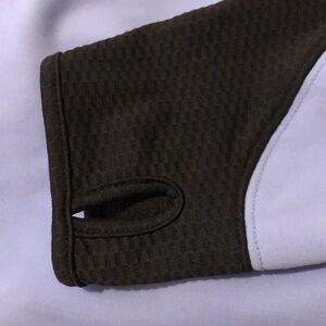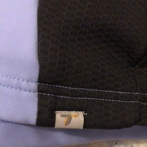 EUC. Periwinkle with black waist tapering, thumb holes, fleece lined, no visible flaws. Hidden money pocket with zipper on left hand side.