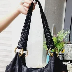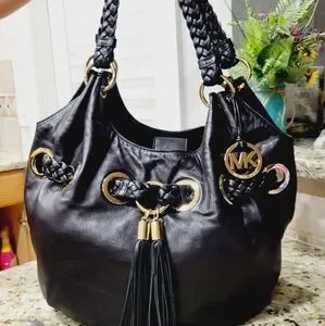 Michael Kors Black Leather Tote Bag Large With Braided Handles