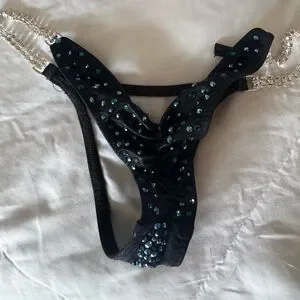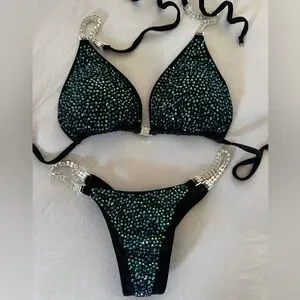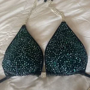Selling only because I purchased this suit at the end of the season last year with the intention of wearing it. I have since had an augmentation and the top is too small for me. The bottoms have a few inches either way for adjustments. Retails 660 before the extra crystal color, tax etc. If you are looking for a 100 dollar suit, this isn’t it. Price is placed very competitively for a fully encrusted brand new top designer suit. No low ball offers. You can buy the suit from the website for 700.