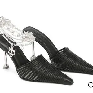 Black Heeled Mules with Chain Detail