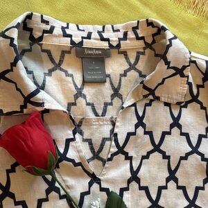 🩷 NEIMAN MARCUS; Classy & Upscale Geometric Black/White 100% LINEN Tunic; Sz. S!