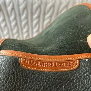 This elegant crossbody bag from Dooney & Bourke features a sophisticated black body with contrasting brown leather accents. Its compact design and adjustable strap make it perfect for everyday use, while the gold-toned hardware adds a touch of luxury. Vintage with signs of wear / discolouration outside bag check photos for reference