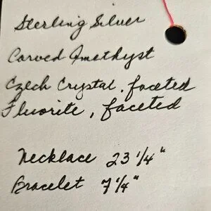 Hand Crafted Carved Amethyst Fluorite Necklace and Bracelet Ensemble