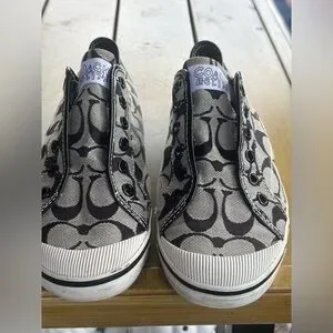 Coach slip on sneaker, like new SIZE 8 1/2 B, black, and white, good condition