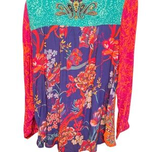 Soft Surroundings Hermosa Floral Multi color Print Blouse w Embroidery Sz XL
