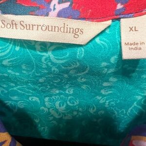 Soft surroundings lovely long tunic/button down blouse. Beautiful bright print. Can be left open with cami or tucked in
