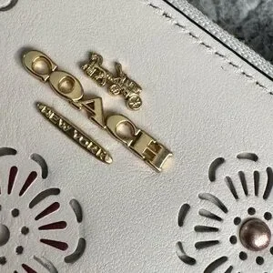 • Hardware: Gold-tone Coach logo and accents