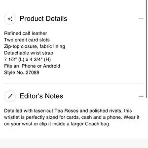 • Wrist Strap: Detachable leather wrist strap with clip, making it versatile as a clutch or wallet insert