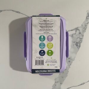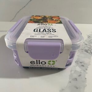 Ello brand. Glass food storage container with lavender silicone exterior details & lid. NWT. Meal prep!