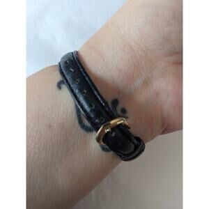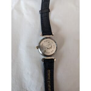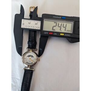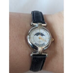 Express LA Women's Moon Phase Date Silver Tone Black Leather Strap Watch