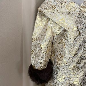 Barbie x Unique Vintage Evening Splendour Brocade Coat w/Faux Fur NWT