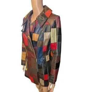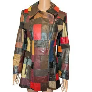 La Vogue Patchwork Leather Jacket Vintage Women Size 10 Multi-Colored 3/4 Length