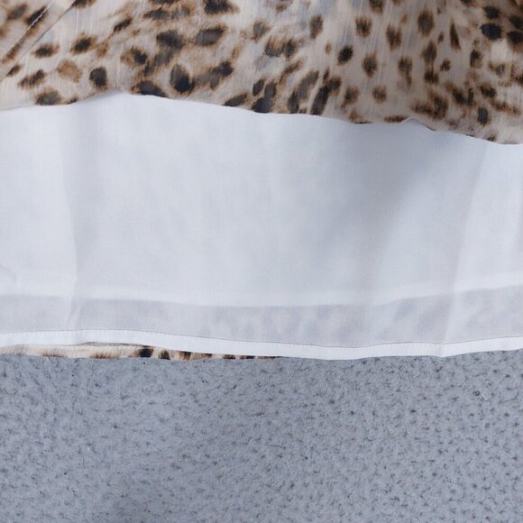 Loft Blouse Womens Large Animal Print Chiffon Short Sleeve Popover Ruffle NWT