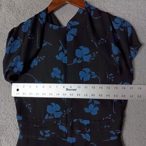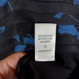Parker Dress Women 6 Black Floral Silk Blend Pleated Evanna V-Neck Asymmetrical