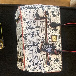 Stylish and spacious, the Dooney & Bourke Mickey Mouse Tote Bag features a playful black and white design. Perfect for Disney fans, this bag combines functionality with fun. Excellent Pre Owned Condition. Only carried once. Like new. Smoke free home. Zip closure. Opening measures approximately 15 inches, vertical length is 11 inches and bottom 11 . Was purchased at Disney Springs. 💯 Authentic. No stains !