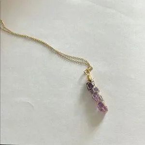 Gold and Purple Amethyst Mesh Bag Pendant Necklace