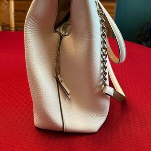 Anne Klein Women's Chain 4 Poster Tote Ivory PEBBLED Leather Snap Close