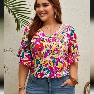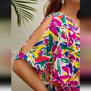 Brighten your wardrobe with this vibrant floral blouse by Shein VCAY. Featuring a stunning mix of colours, this top is perfect for any occasion.