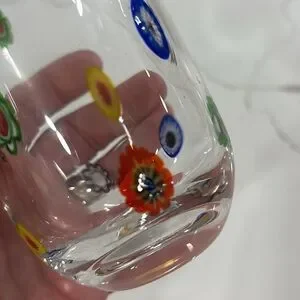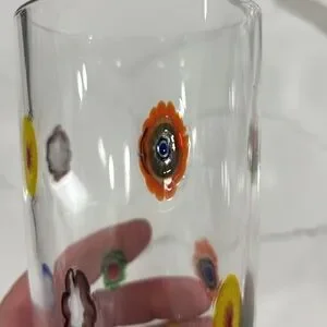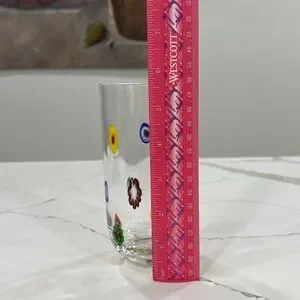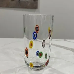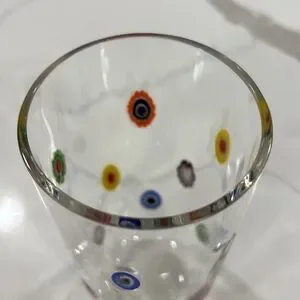 This beautiful Millefiori drinking glass will be the perfect addition to your fine glassware. Contemporary style with a variety of colors in the design. Nice rim for comfort. Add this to your collection. Excellent preowned condition. Treat yourself today.