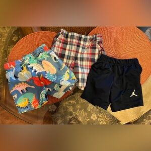 This fun set of kids' shorts includes a pair of Cat & Jack swim trunks with a vibrant dinosaur print, a pair of black Jordan athletic shorts and a pair of classic cotton plaid design shorts. Perfect for playful days, these shorts offer comfort and style.