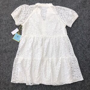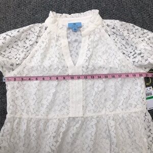 CeCe puff sleeve babydoll lace mini dress size PL, split neckline, short puff sleeves, 70% nylon 30% cotton, no pockets