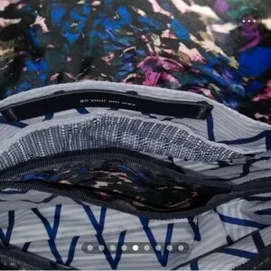 This stylish crossbody bag from Lululemon Athletica combines functionality with a chic design, featuring a vibrant pink and blue color scheme. Perfect for on-the-go convenience, it offers a sleek and modern look ideal for everyday use. This bag in great used condition but as seen on the last picture, has a very tiny spot in the interior lining. Not too noticable. Lots of storage and adjustable strap!