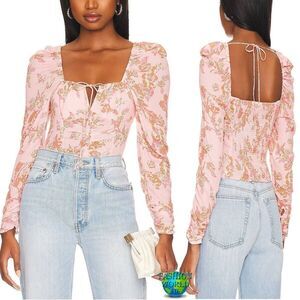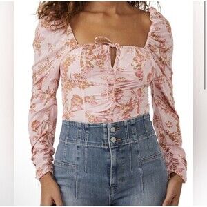Free People Hilary Printed Top Floral Pink Combo Size XS